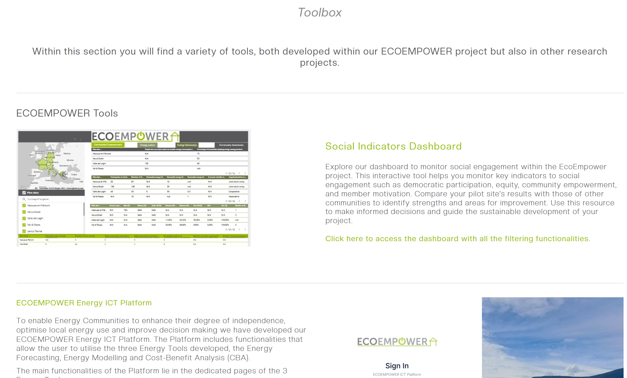 Then register for our ECOEMPOWER Community Platform (EECP) and gain access to our selection of tools like our ICT Energy Platform,  or a Buisness Modelling Tools or a Maturity Tool for Energy Communities.
